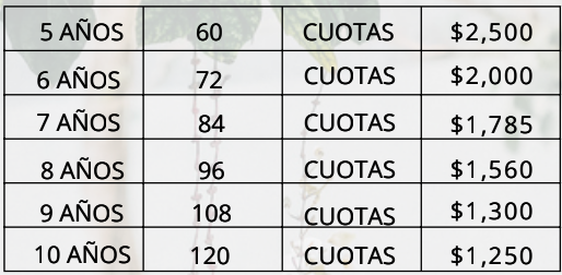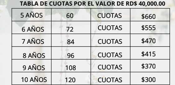 TABLA DE CUOTAS POR EL VALOR DE RD$ 40,000.00
